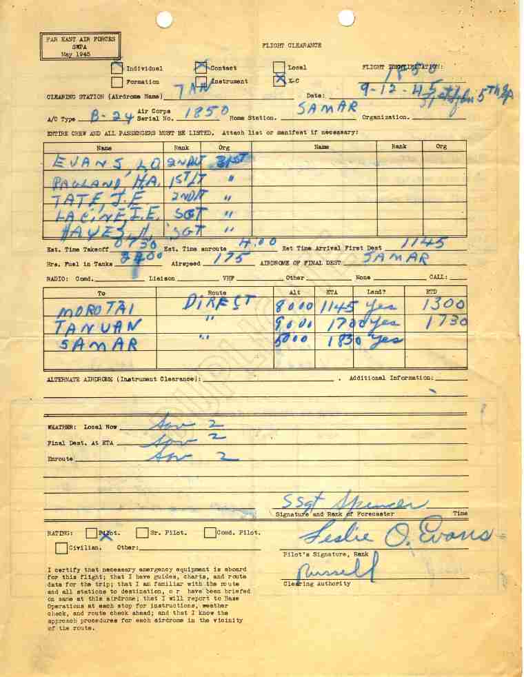 September 12, 1945, Lt. Evans flew a B-24