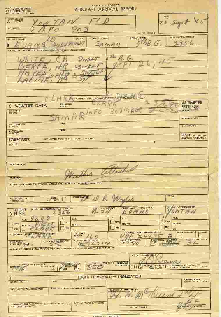 September 26, 1945 paper work.